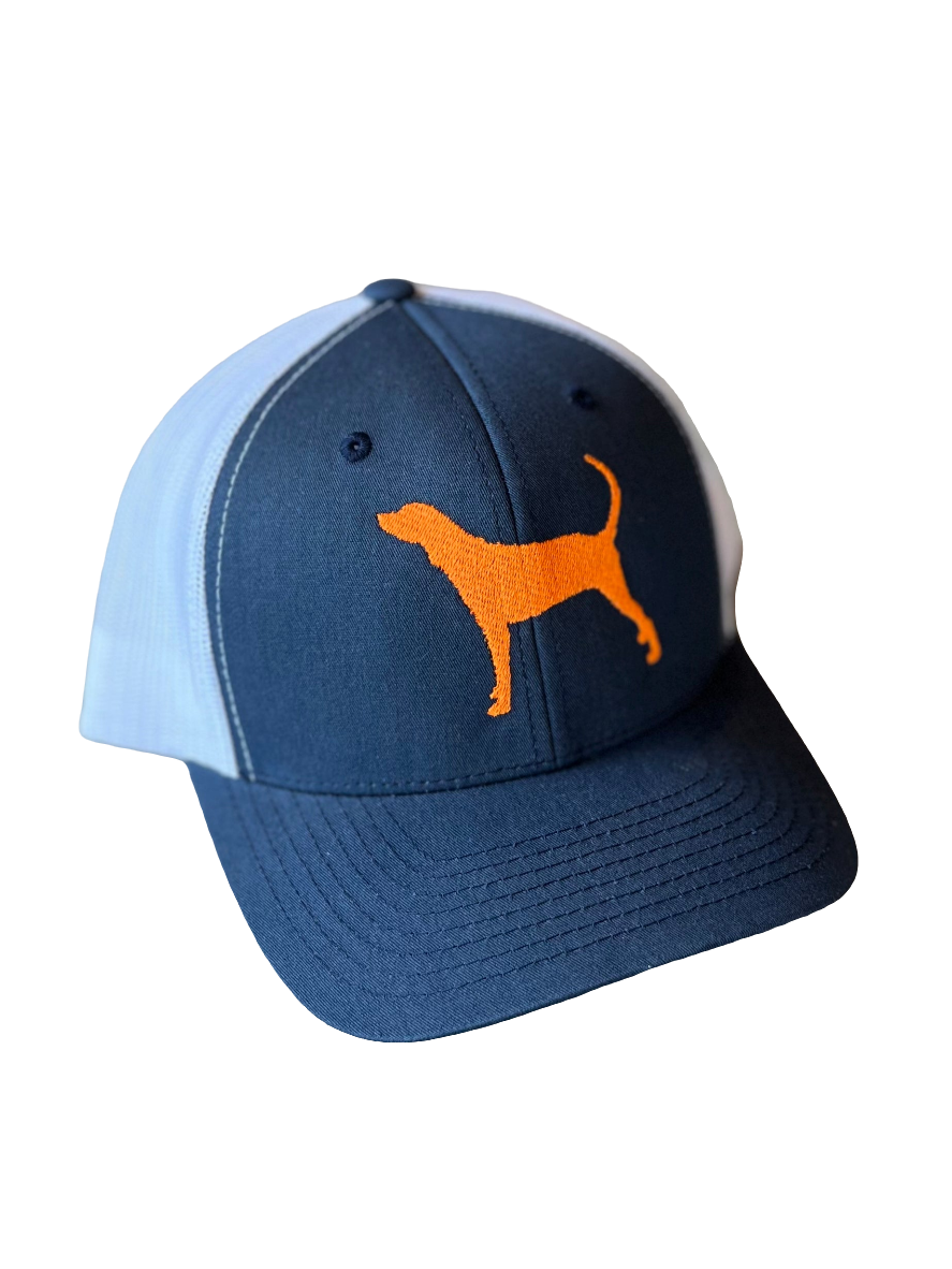 A breed native to TN and man's best friend. Our original design on a Navy hat with white mesh back. Our DW circle logo is on the side of every hat for authenticity.